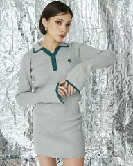 ワンポイントシャツミニニットワンピース