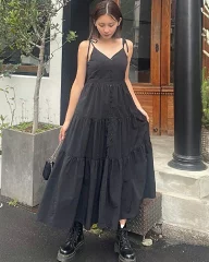 バックオープンティアードキャミワンピース