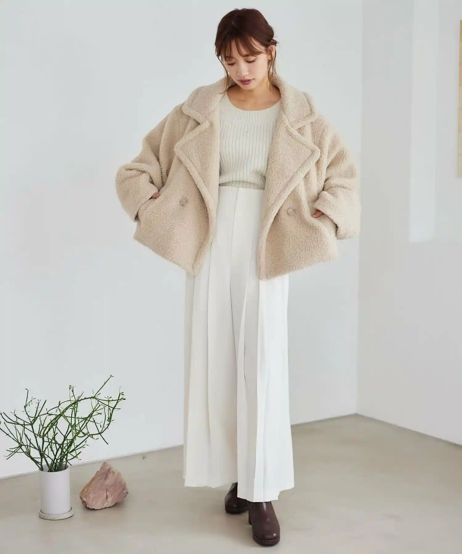 ブロッキングボアショートブルゾン