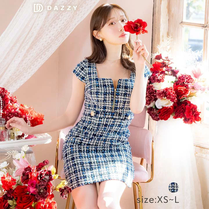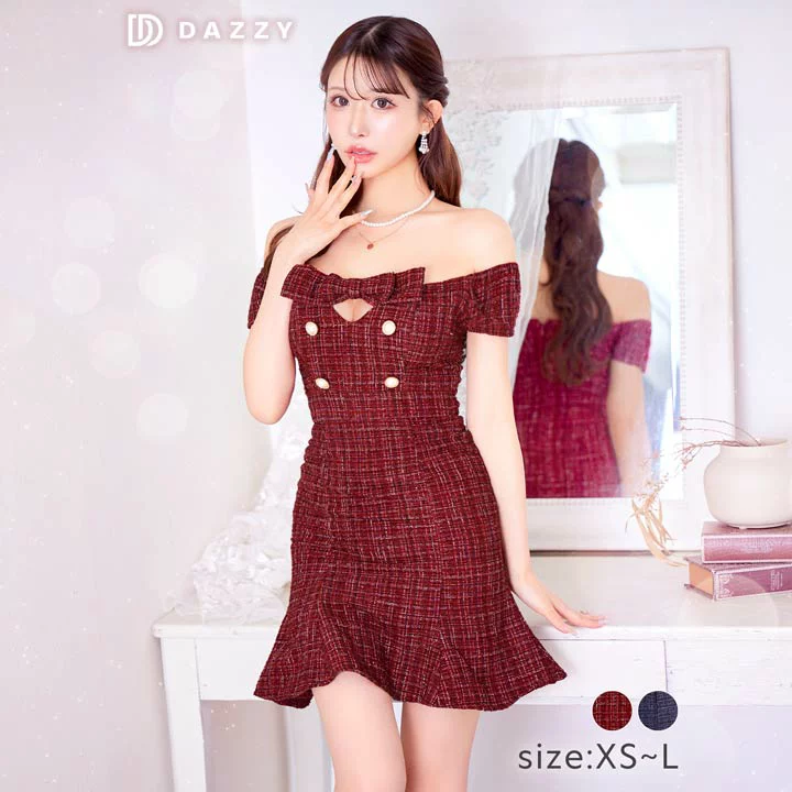 ツイードチェックオフショルAライン